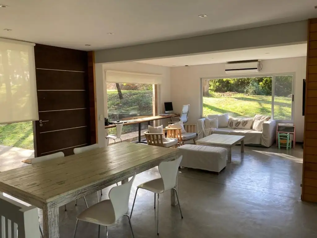 _ Posee cocina equipada con muebles sobre y bajo mesada integrada al living comedor mediante una barra desayunadora, lavadero, toilette, tres dormitorios y un baño completo. Cuenta con calefacción por losa radiante, equipos de aire acondicionado y es ofrecida totalmente amoblada. Amplio patio con galería semi cubierta y parrilla cubierta.