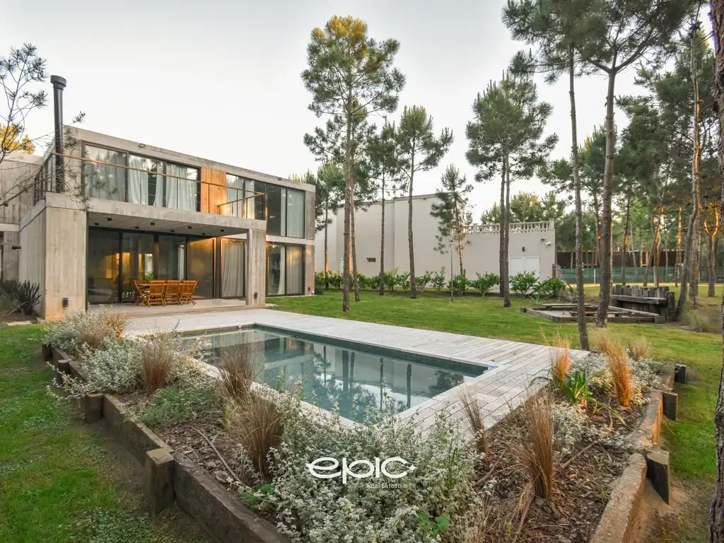 Propiedad de categoría de muy buena calidad, diseño y confort. Construida con materiales de primera, su estructura de hormigón visto le otorga un toque moderno y duradero. La distribución y los amplios espacios hacen de esta casa un lugar ideal para disfrutar de la tranquilidad y belleza del entorno.