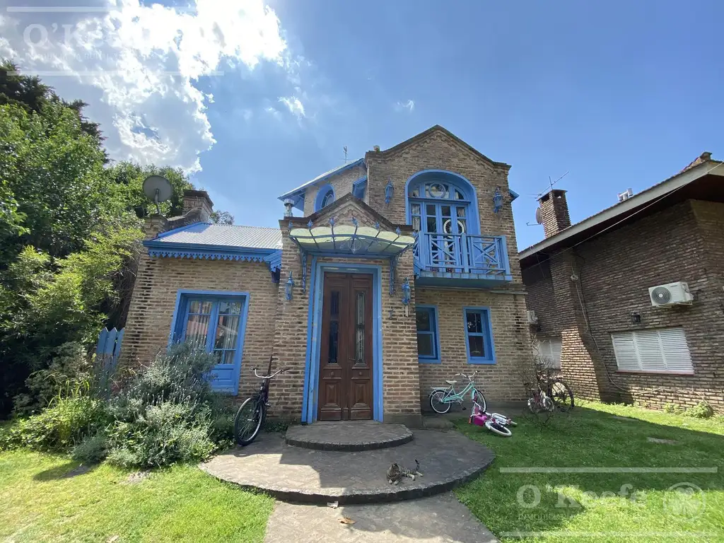 Planta Baja: Living comedor, cocina con muebles bajos y barra desayunadora , toilette con vanitory antiguo adaptado, quincho incorporado a la casa con parrilla , mesada con pileta y muebles bajos, de este ambiente se sale directamente a la galería y al parque . El living y el quincho tienen salida directa a la galería en L.