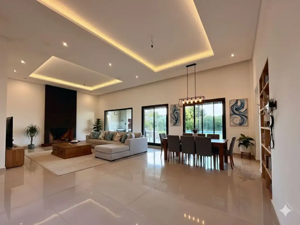 La propiedad destaca por su fluidez espacial y detalles de diseño industrial-contemporáneo:
