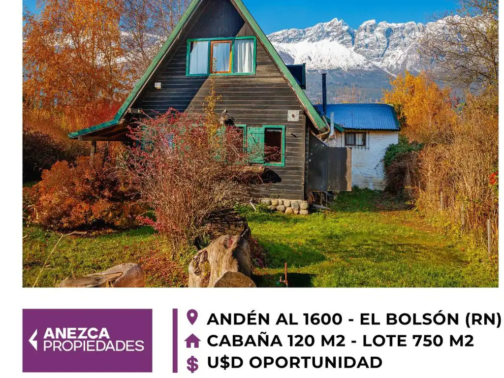 CABAÑA 3 DORMITORIOS - LOTE 750 M2 - EL BOLSÓN