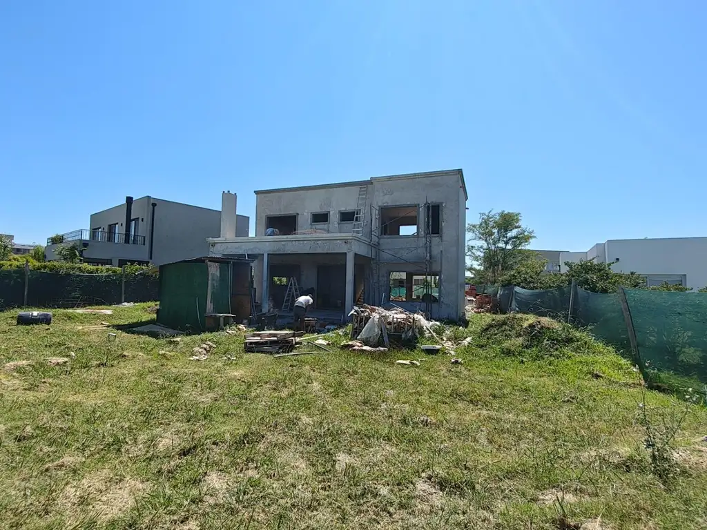 Casa en venta en obra avanzada (fin previsto may/26), Barrio Puerto, El Cantón, Escobar, Prov. de Bs. As.. Sup. aprox. terreno de 831 m2, Sup. Cubierta 170m2. Sup. Semi cubierta 50 m2, total 220m2, Orientación fondo al oeste.