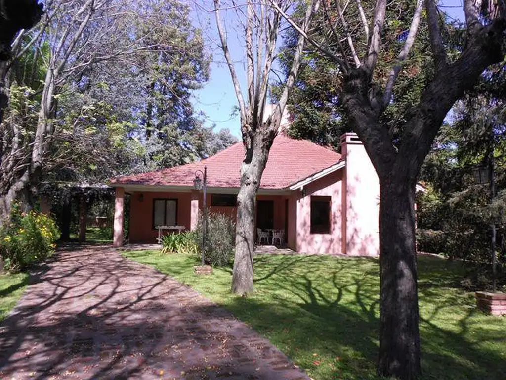EDIFICADA SOBRE HERMOSO LOTE CENTRAL PARQUIZADO Y ARBOLADO DE 3563M2, CON UNA SUPERFICIE CUBIERTA EN LA CASA PRINCIPAL DE 120M2 CONSTA DE RECIBIDOR, ESTAR COMEDOR CON HOGAR, COCINA INTEGRADA, 1 BAñO COMPLETO, 1 DORMITORIO AL FRENTE, HABITACION PRINCIPAL CON SU BAñO EN SUITE. EN PLANTA ALTA ESCRITORIO O TERCER DORMITORIO CON TOILETTE.