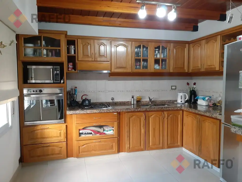 PLANTA BAJA: Ingreso al living, el cual tiene pisos de parquet plastificados. Cocina comedor amplia con alacenas y bajo mesada, pisos de porcelanato. Baño completo con ducha. Dormitorio con calefactor y baño en suite con bañera. Acceso a un amplio patio con espacio de césped y parrillero con bacha y bajomesada. Baño con sector de lavadero. Garage para un vehiculo.