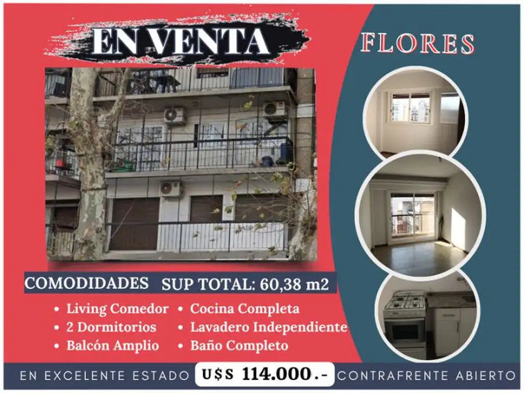 FLORES, 3 Amb, U$S 114.000.-,C/Bcon,APTO CRÉDITO