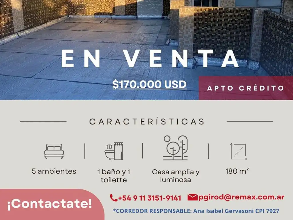 PARQUE-AVELLANEDA-TANDIL Y LAGUNA-CASA-4-Amb.2-Plantas-Terraza-IMPECABLE-APTO-CREDITO