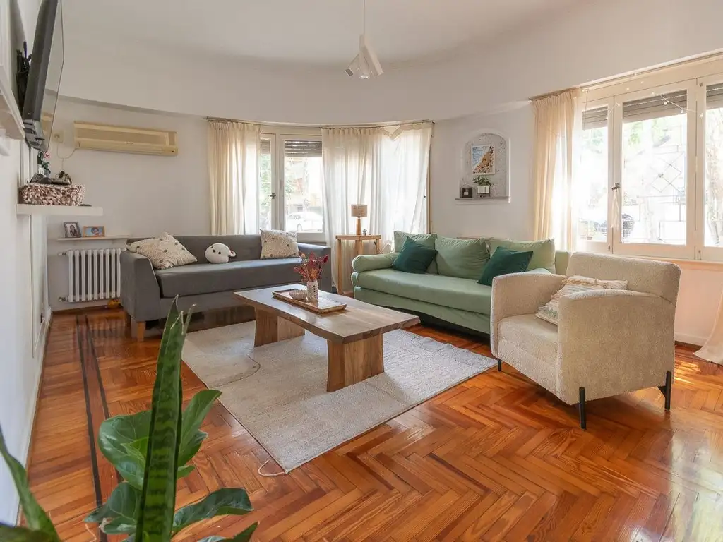 Muy buen living comedor de buenas medidas, toilette de recepción, 2 dormitorios con placard, cocina comedor super luminosa con muebles en alto y bajo mesada puerta ventana, para salida al jardín, cochera, espacio gabinete, estudio, escritorio o dependencia con baño