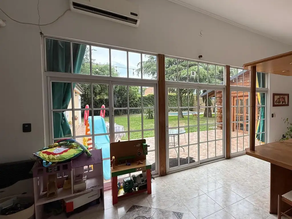 La vivienda cuenta con 18 ambientes organizados para brindar comodidad tanto en el uso familiar como en actividades laborales. Posee amplios ventanales que aseguran muy buena iluminación natural y una circulación eficiente entre los distintos sectores.