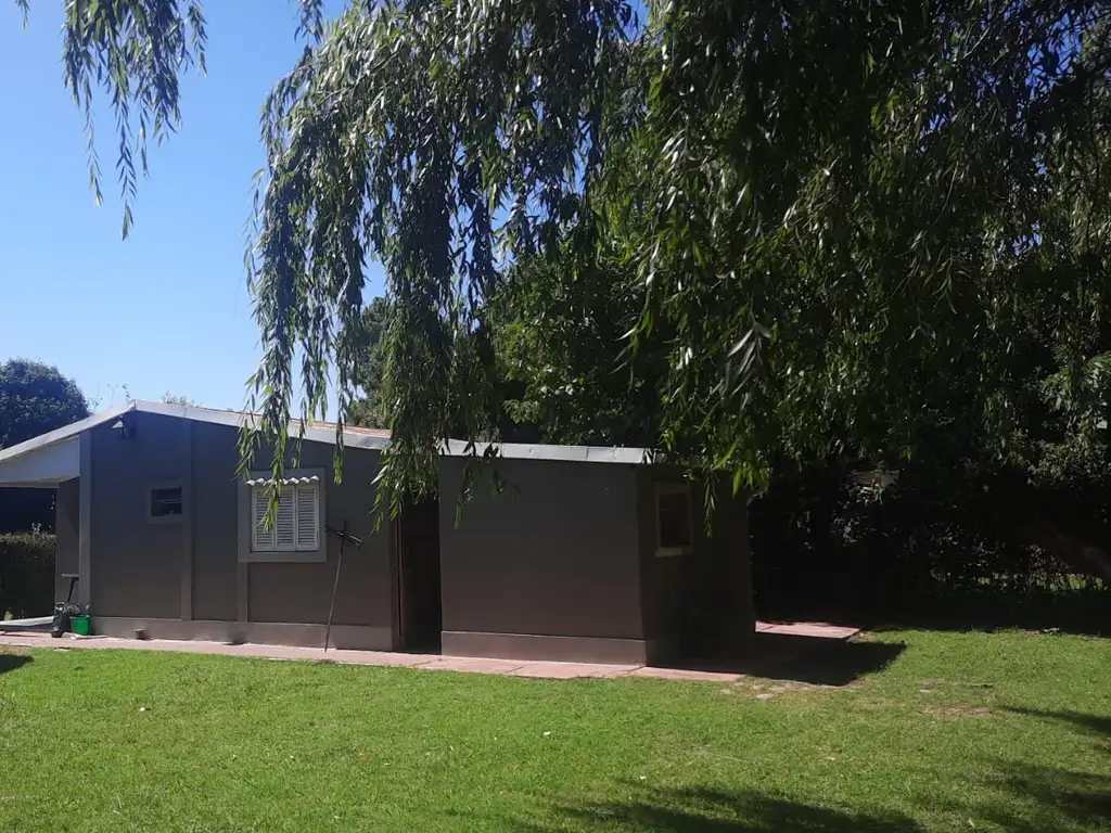 Cocina comedor, dos dormitorios, baño y amplio parque arbolado; 2 terrenos 10 x 50