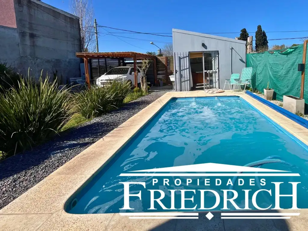 Propiedad completa con casa principal y monoambiente independiente, galería, depósito y pileta, ideal para disfrutar en familia.