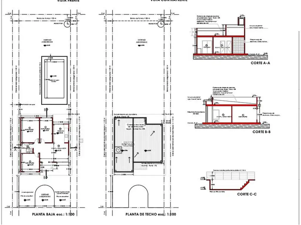 Efectuado en hormigón con armadura de malla de piso 5.5 mm y nylon de 200 micrones, respetando rigorosamente los niveles con las pendientes efectuadas para facilitar el escurrimiento del agua llegando a un espesor de 12 cm aprox, recubierto con una carpeta hidrofuga y niveladora de 2 cm de espesor aprox , culminando con cerámico en toda la superficie.