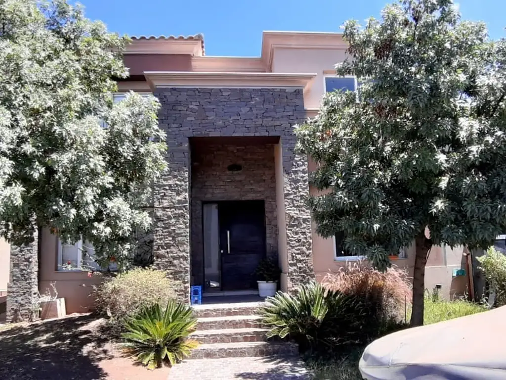 Pisos de porcelanato y entablonados, aberturas de aluminio, calefacción central por radiadores, galería con churrasquera, jardín con riego, piscina y cochera cubierta para tres autos.