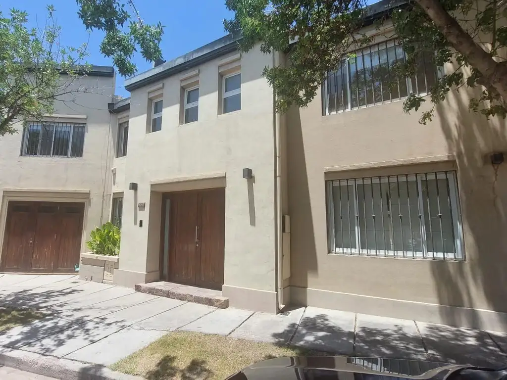 La casa está desarrollada en dos plantas y conta en Planta Baja: Hall recibidor, baño toilette, living, comedor principal, cocina en con completo amoblamiento de alacena y bajo mesada, estar diario. Todos los ambientes con vistas al jardín. Lavadero independiente con dependencias de servicio completas. Cochera para un vehículo con portón automatizado. Patio con jardín, pérgola y churrasquera.