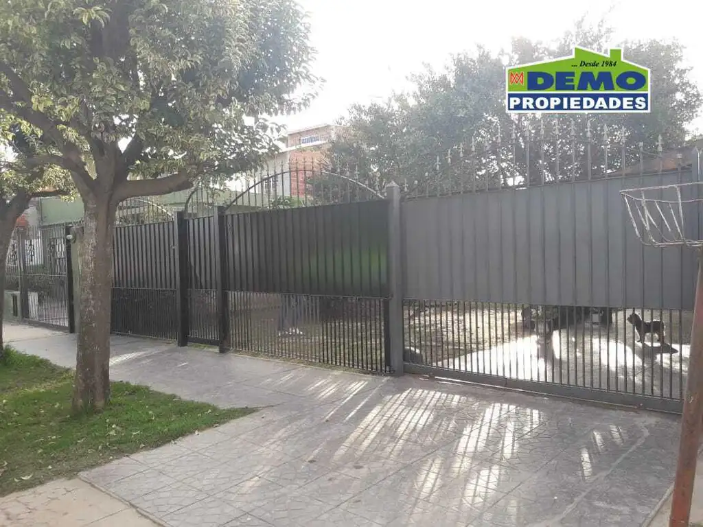 Frente con rejas y portón corredizo de acceso vehicular. Cochera semi cubierta.