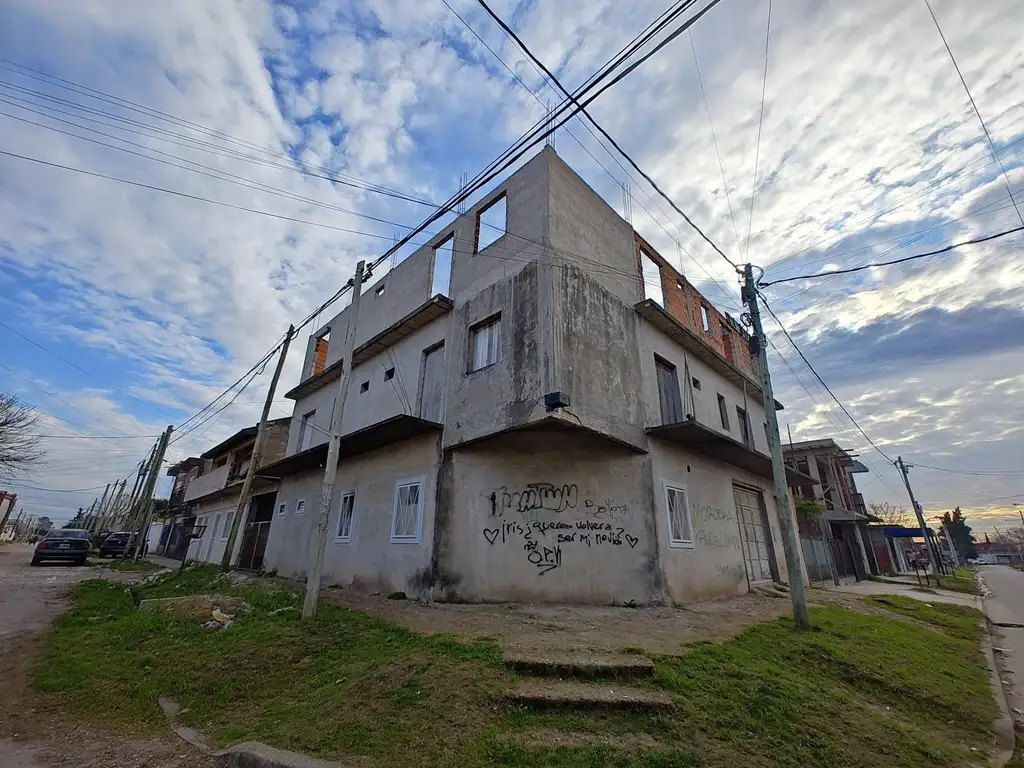 Entrada por pasillo 12,65 x 13 mts a los 4 departamentos, construcción de mampostería con techo de losa, 2 solo con instalación de agua y desagues, piso de cemento, escaleras de hormigón armado.