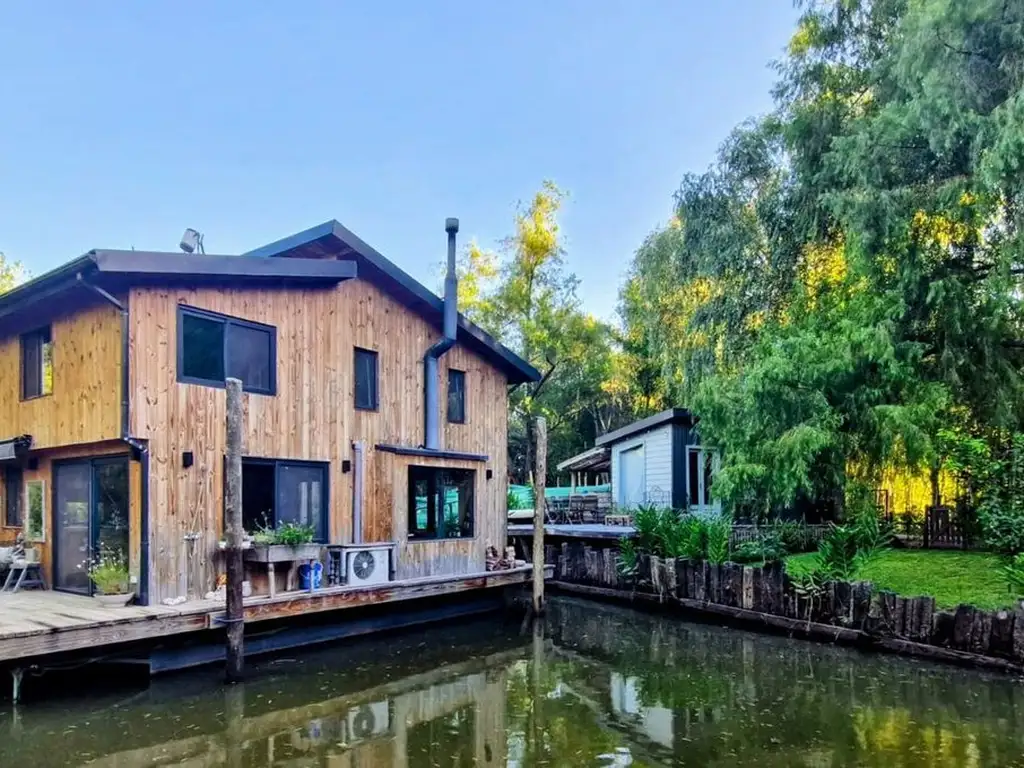 Esta propiedad cuenta con dos viviendas, una en tierra , la otra en agua de 100 M2 ( vivienda construida sobre flotadores de acero náutico), en la vivienda flotante cuenta con 3 dormitorios, 2 baños completos, 1 toilete una amplia sala de estar y cocina comedor integrado. La casa está construida con un sistema de woodframe, lo que le da un estilo moderno acogedor, además, tiene cerramientos DVH, colector solar y sus artefactos son eléctricos.