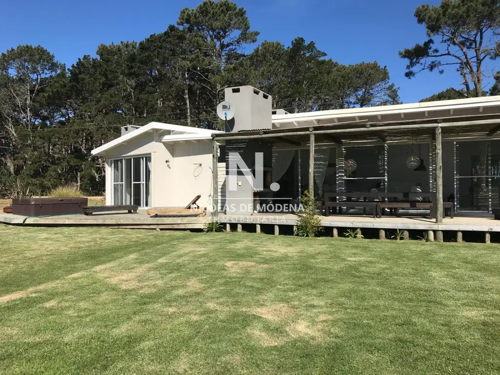 Cuenta con cuatro dormitorios, 2 de ellos en suite y un baño que comparten los otros dos dormitorios, living comedor amplio con cocina integrada, toilette, ventanales grandes unidos a un buen deck junto al parrillero y jacuzzi.