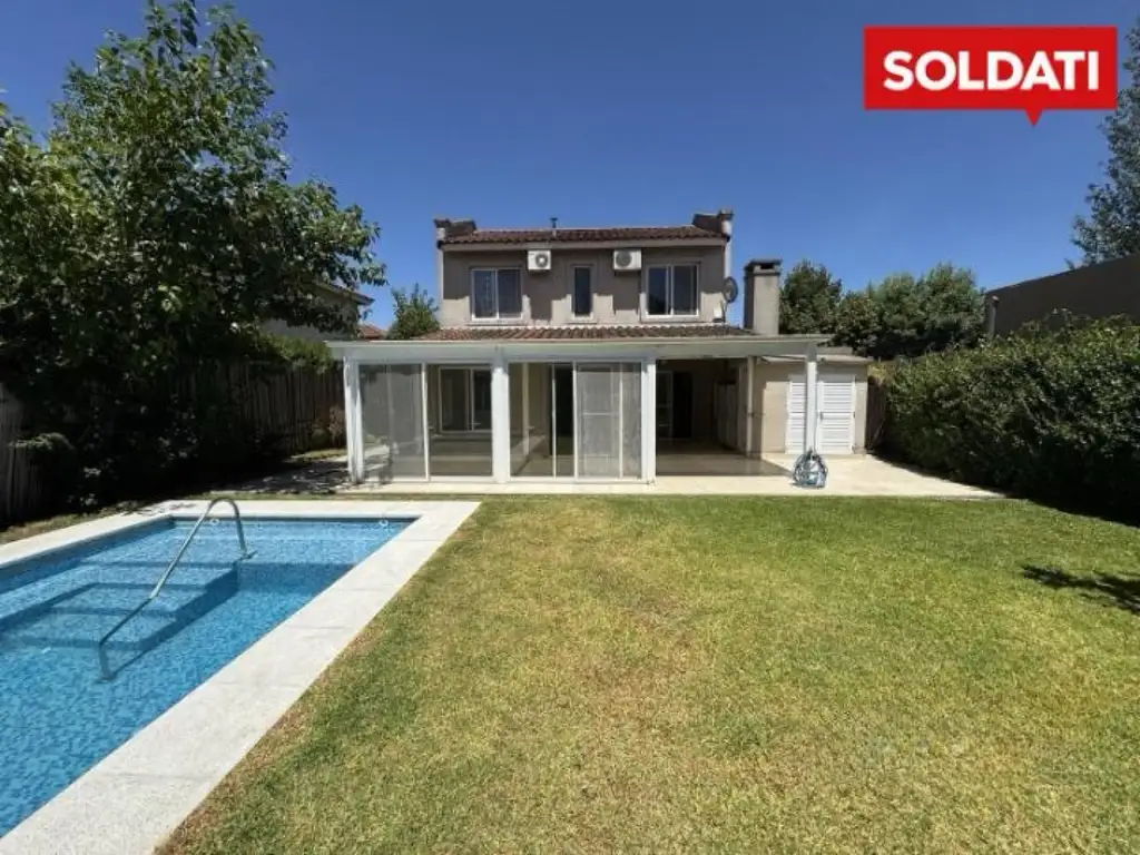 Planta Baja: hall de recepción. Toilette. Living-comedor con salida a galería cubierta, parrilla. Cocina-comedor diario. Jardín parquizado con piscina.