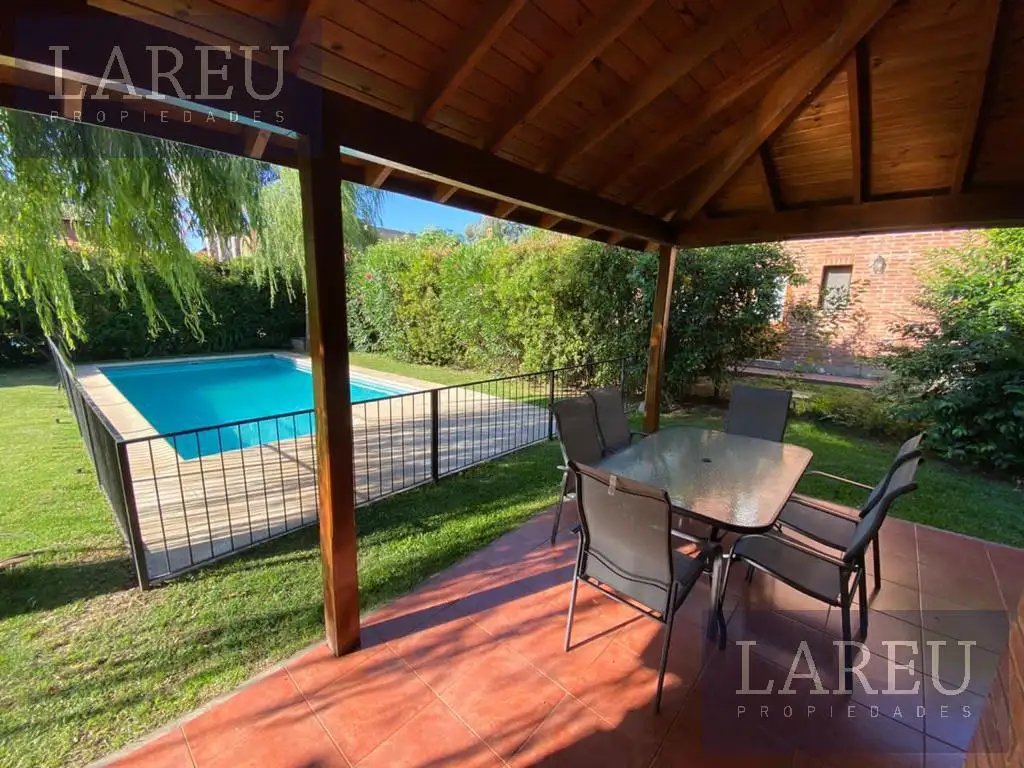 Planta Baja: hall de recepción. Escritorio muy amplio. Living con hogar a leña. Comedor ppal. Toilette . Cocina con comedor diario. Lavadero. Habitación de servicio y baño. Planta Alta: hall de distribución. Dos dormitorios con placares. Baño completo. Master suite con vestidor. y jacuzzi. Balcón. En el exterior: muy buena galería, jardín parquizado y con riego. Pileta con protección. Parrilla cubierta. Garage techado. Losa radiante. Aires acondicionados.
