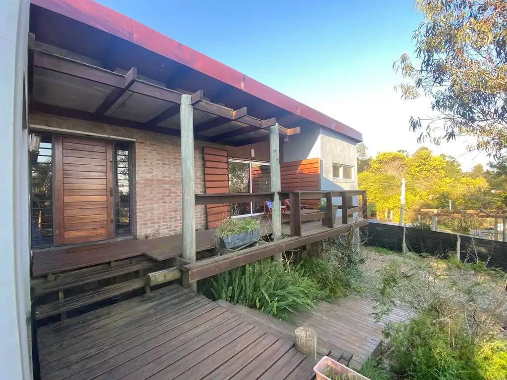 La casa se encuentra elevada en el terreno y retirada, por lo que tiene un lindo jardín al frente y espacio para más autos dentro del predio. Además por su altura y ubicación, tiene una vista hermosa del atardecer.