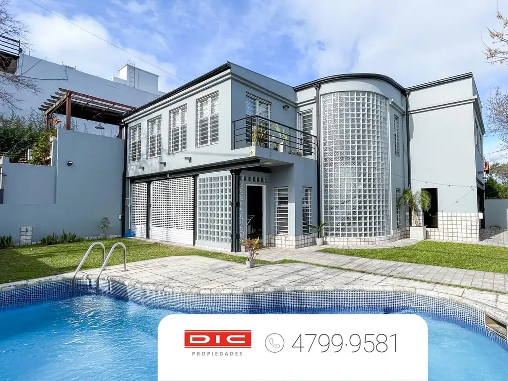 De estilo racionalista con materiales exclusivos. Cuenta con un gran lote con jardín soleado y piscina revestida con venecitas y vereda atermica de travertilit.