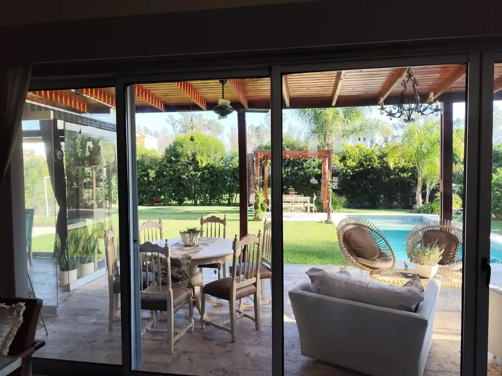 Esta totalmente instalada y con muchos detalles importantes para el funcionamiento del día a día, tenemos en PB una buena recepción living comedor importante con chimenea, amplios ventanales con salida a galería y jardín, playroom con ventanal al frente e importante mueble a medida en pared, toilette, cava de vinos bajo escalera, escritorio o cuarto dormitorio en suite con baño completo y ducha con mampara, lavadero independiente, la cocina es con isla, muy funcional con todo el equipamiento, con mucho lugar de guardado y con salida a galería/parrilla, la cual esta cubierta con una pérgola con techo de policarbonato y cerramiento de vidrio plegables tipo vitroglass. El resto de la galería semicubierta sale al jardín, el cual se encuentra también todo armado, grama bahiana, cercos de olea texana para su mejor poder cubritivo, pileta de 3,20 x 8,70 mts con borde piedra refractaria, y revestimientos de venecitas, lindero a la pileta y con el mismo piso, hay una pérgola de jardín con plantas y bancos que decoran un lindo ambiente para estar en el verano o por las noches. Baño exterior independiente. La planta alta consta de 3 dormitorios uno de ellos en suite, los mismos cuentan con un hall de distribución que tiene un living íntimo con salida a balcón, la habitación principal cuenta con un buen vestidor, escritorio e importante baño con bacha doble en mármol, bañera con hidromasajes y ducha con mampara, los dos cuartos secundarios json uno al frente y el otro con vista a jardín, comparten un baño completo con bañera.