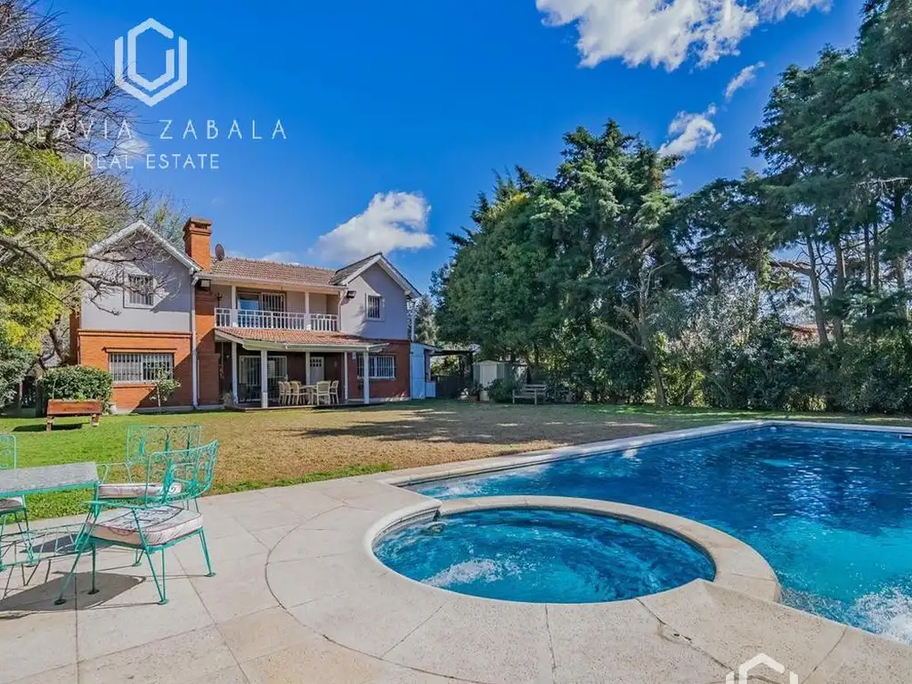 - Jardín con Pileta climatizada y jacuzzi, galería con parrilla.