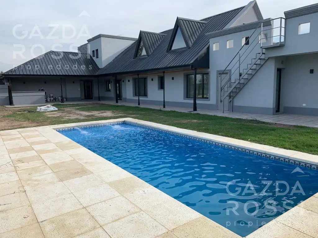 Planta baja: Hall de recepción, toilette, muy amplio living comedor con vistas al frente y al jardin, Cocina con comedor diario, coffee bar, espacio para lavavajillas, horno empotrado, anafe, campana, alacenas y bajo mesadas colocadas, vista al frente, con doble circulacion a la galería y la cochera. Area privida: 2 cómodos dormitorios con placar e interiores con vista al jardin. Baño completo. Lavadero. Dormitorio pincipal, de amplias dimensiones, en suite con gran vestidor y vista a la piscina.