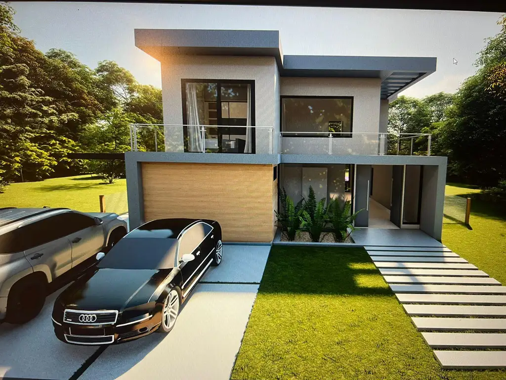Cochera para dos autos. Se entrega con pileta, parquizado y luminarias colocadas.