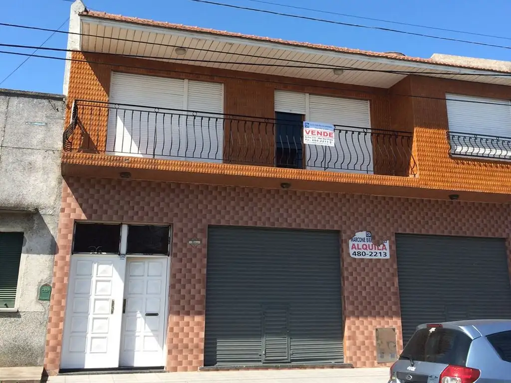 En planta baja consta de 2 locales a la calle de buenas dimensiones con baño y patio, en planta alta propiedad de 3 ambientes compuesta por amplio living comedor a la calle con balcón saliente, dos dormitorios con placard, baño completo, cocina comedor y lavadero con balcón al contrafrente.