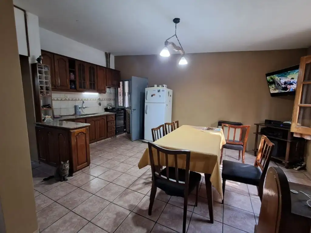La propiedad desarrollada en 2 plantas tiene en su ingreso un luminoso living que conecta con una amplia cocina comedor con su amoblamiento de alacena y bajo mesada de madera en excelentes condiciones de mantenimiento. Posee 3 dormitorios: 2 en planta baja y el tercero en primer piso con vista al extenso jardín. 1 baño completo y salida hacia la lavandería y cochera techada pasante para 3 autos. A continuación el amplio patio con churrasquera y parquizado impecable ideal para compartir y disfrutar de momentos de esparcimiento al aire libre.