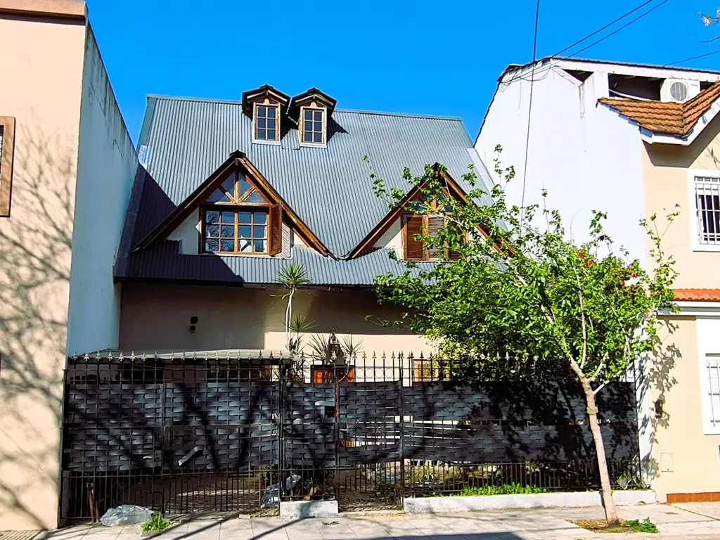 La propiedad está construida con retiro de jardín y cochera al frente, y se desarrolla en 3 plantas.