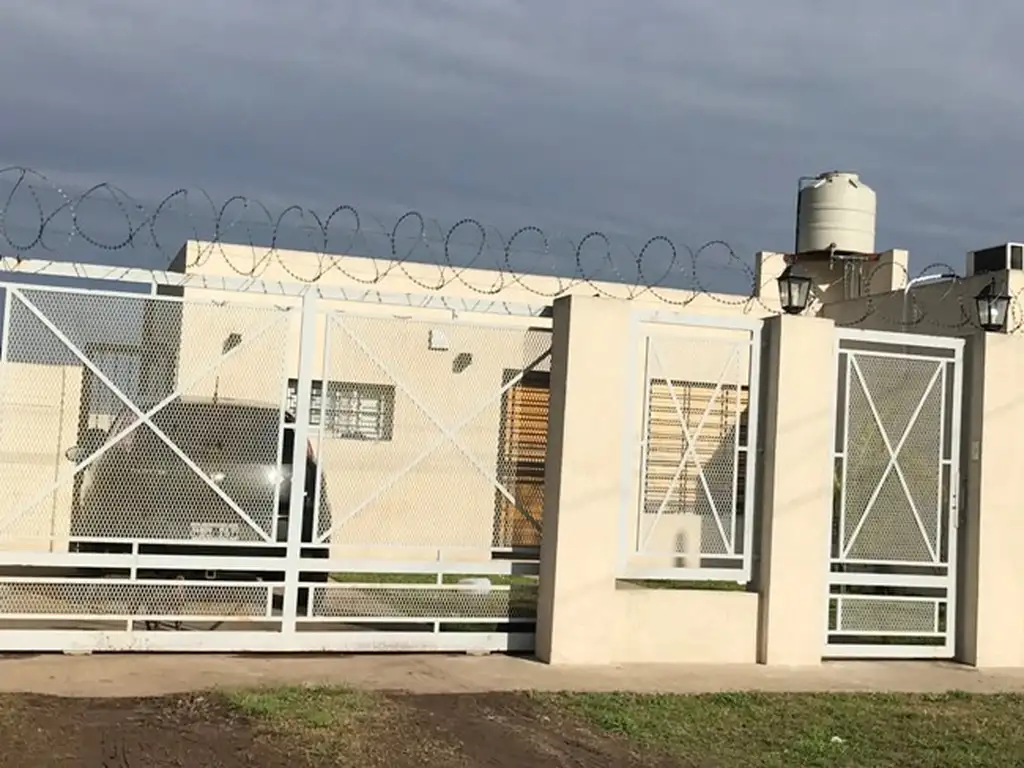 Casa Americana con 2 dormitorios c/pisos ceramicos, living - comedor, cocina - comedor diario amoblado, baño completo, patio c/lavadero, sector de parrilla, entrada de vehiculo y buen parque con iluminacion con pared perimetral medianera, rejas todas aberturas, porton automatizado.