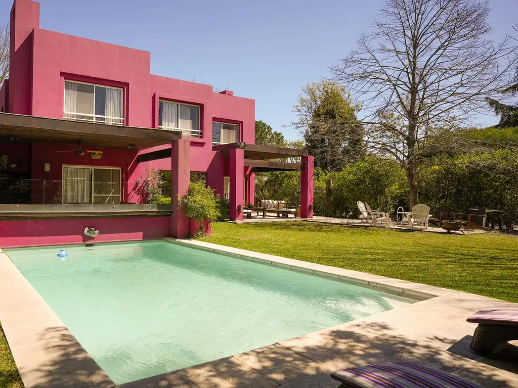 Planta Baja: Hall de ingreso con ventanal a jardín interno, placard de recepción y toilette. Living con chimenea, vista al jardín interno y salida a la galería. Comedor con ambas vistas a jardin interno y al jardin. Dormitorio en suite. Cocina con mucho lugar de guardado y comedor diario, lavadero con entrada independiente y dependencia de servicio con baño completo.