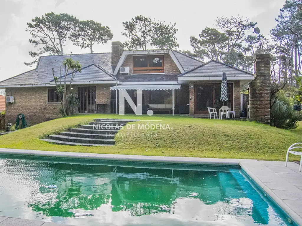 1° piso: living con hogar a leña, comedor, amplia cocina con comedor diario y toilette. Suite principal con baño con hidromasaje y ducha, y amplio vestidor en planta alta con guardilla con salida a terraza. 3 dormitorios más (1 suite).