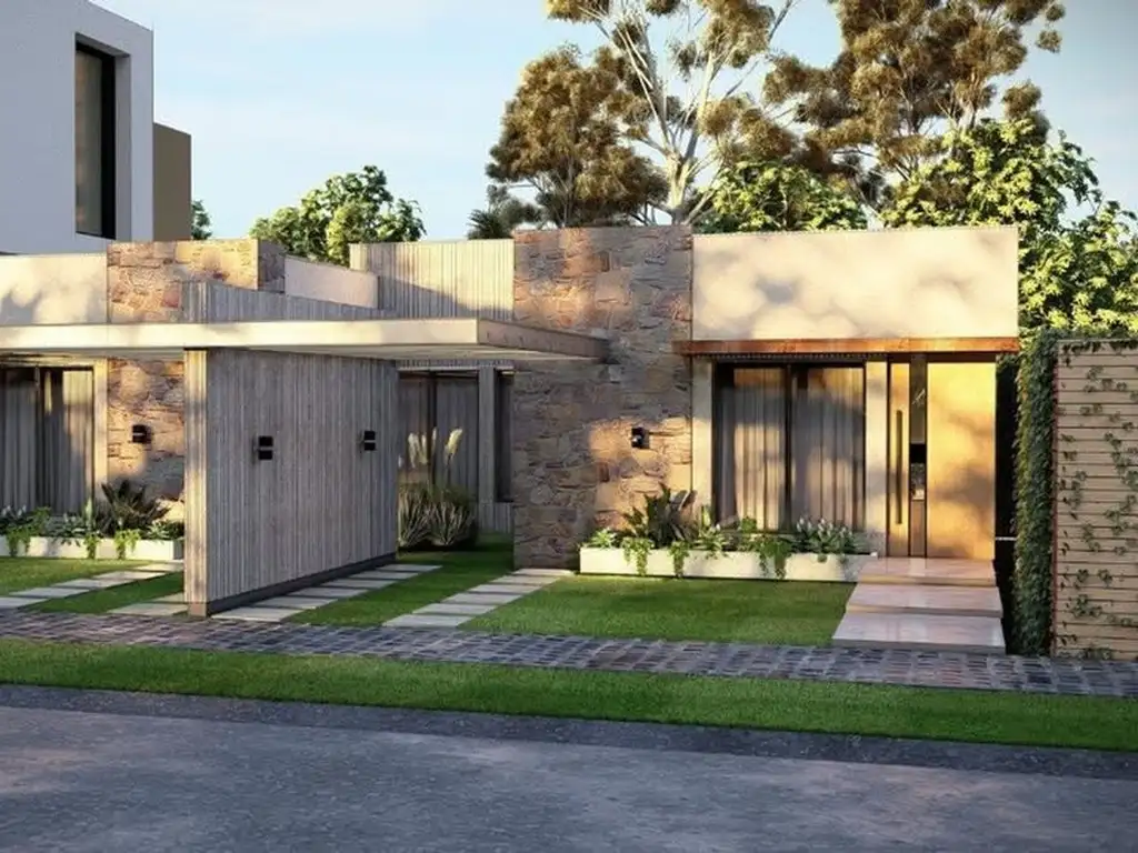 La casa ofrecida está ubicada a solo 40 metros del portal de ingreso, se desarrolla en una sola planta en un lote de 150 m2 y posee 85 m2 cubiertos + cochera para un vehiculo.
