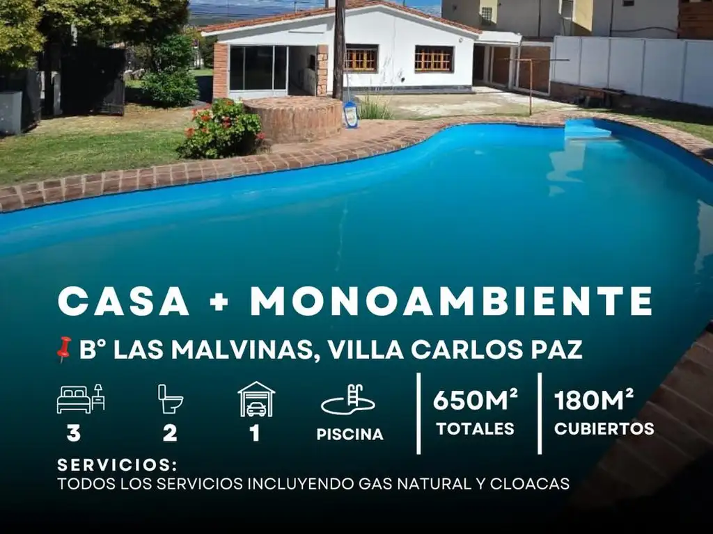 Venta De Casa 3 Dormitorios Monoambiente C/Pileta. B° Las Malvinas, Villa Carlos Paz