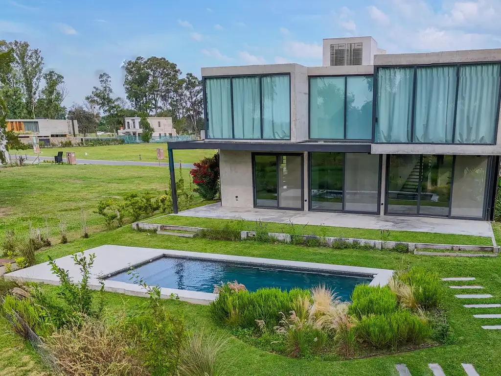 El diseño integra patios internos y canteros con el jardín con pileta parquizado por el estudio Thays y que por la ubicación del lote cuenta con una vista libre de 75 metros