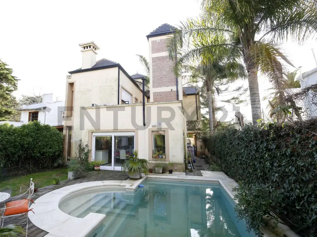 En planta baja encontramos un living-comedor con cocina integrada y lavadero separado. 1 dormitorio con baño completo que bien podría utilzarse como estudio/oficina de trabajo. Salida al patio, con parque y pileta, además de una parilla descubierta. Cochera cubierta para 2 autos.