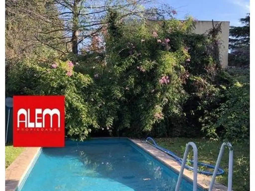 Exterior con galería, quincho con parrilla y gran fondo con piscina . Cabe destacar la excelente vegetación!