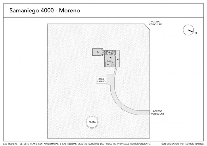 Casa Quinta en Francisco Álvarez, Moreno, Barrio El Ensueño, en la esquina de las calles Samaniego y Pedro de Angelis. Son dos fracciones de tierra de 70 x 30 (2100 m2 c/u). Las dos parcelas unidas forman los 4200 m2.