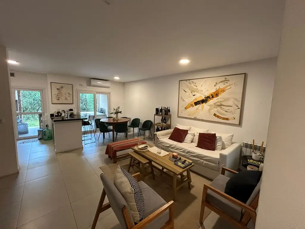 Cuenta con living comedor con cocina americana con barra desayunadora, ventanales que dan a la galería cubierta con parrilla y jardín propio. Toilette de recepción.