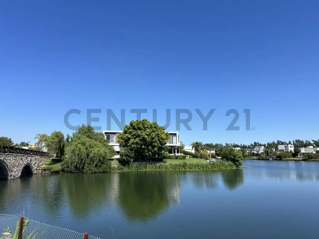 Casa moderna de estilo racionalista de 314 metros cubiertos, al lago, sobre un lote de 820 metros con una muy buena ubicación dentro del Barrio Sauces. Lote con dos bordes de agua en esquina estratégica.