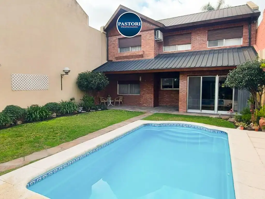 Excelente casa de 6 ambientes, sobre lote de 10 x 28, con 210 metros cubiertos. Al ingresar tenemos lugar techado para un auto, un gran jardín con pileta y un quincho cerrado con parrilla. Planta baja: linda galería antes del ingreso al living comedor. toilette de recepción y un amplia cocina con comedor diario con muebles bajo y sobre mesada con vista al jardín. un dormitorio grande con placard y lavadero independiente con lugar de guardado, la caldera de los radiadores y termotanque. Planta alta: cómodo hall de distribución, los cuatro dormitorios, tres de ellos con vista al jardín y uno al contrafrente, todos con placard y sus interiores. dos baños completos y un cómoda terraza. El estado del inmueble es impecable. La calefacción del inmueble es a través de radiadores en todos los ambientes y aire acondicionado en el dormitorio principal.