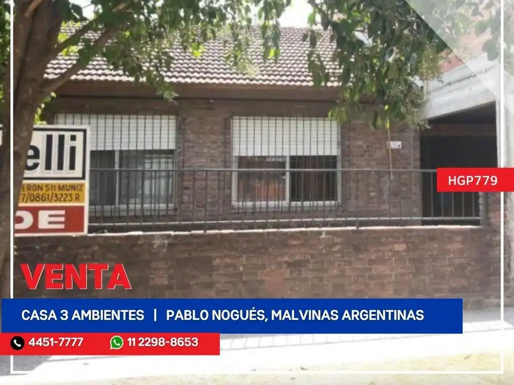 Venta de Chalet de 3 ambientes en Ingeniero Pablo Nogués, Malvinas Argentinas