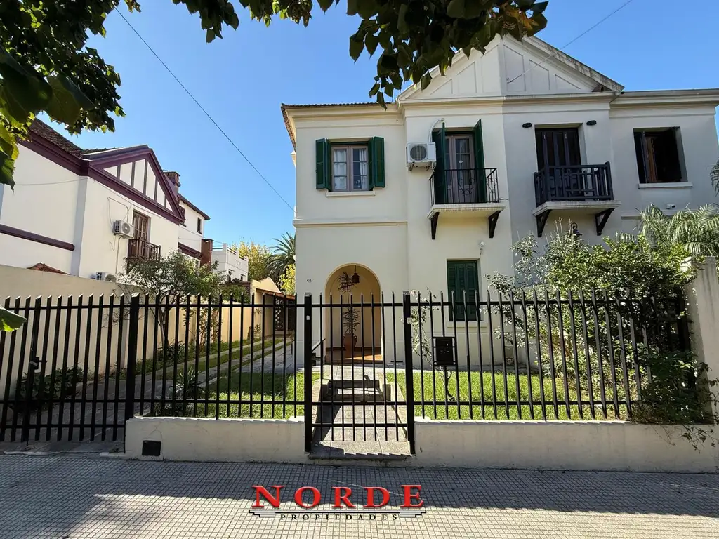 PB: Hall de entrada parquizado. Espacio guardacoche descubierto y cochera cubierta para 2 autos. Luminoso y amplio living comedor. Cocina separada. Toilette de recepción. Quincho semicubierto con sector parrilla. Parque con piscina. Lavadero cubierto con espacio y conexión para lavarropas. Toilette de servicio.