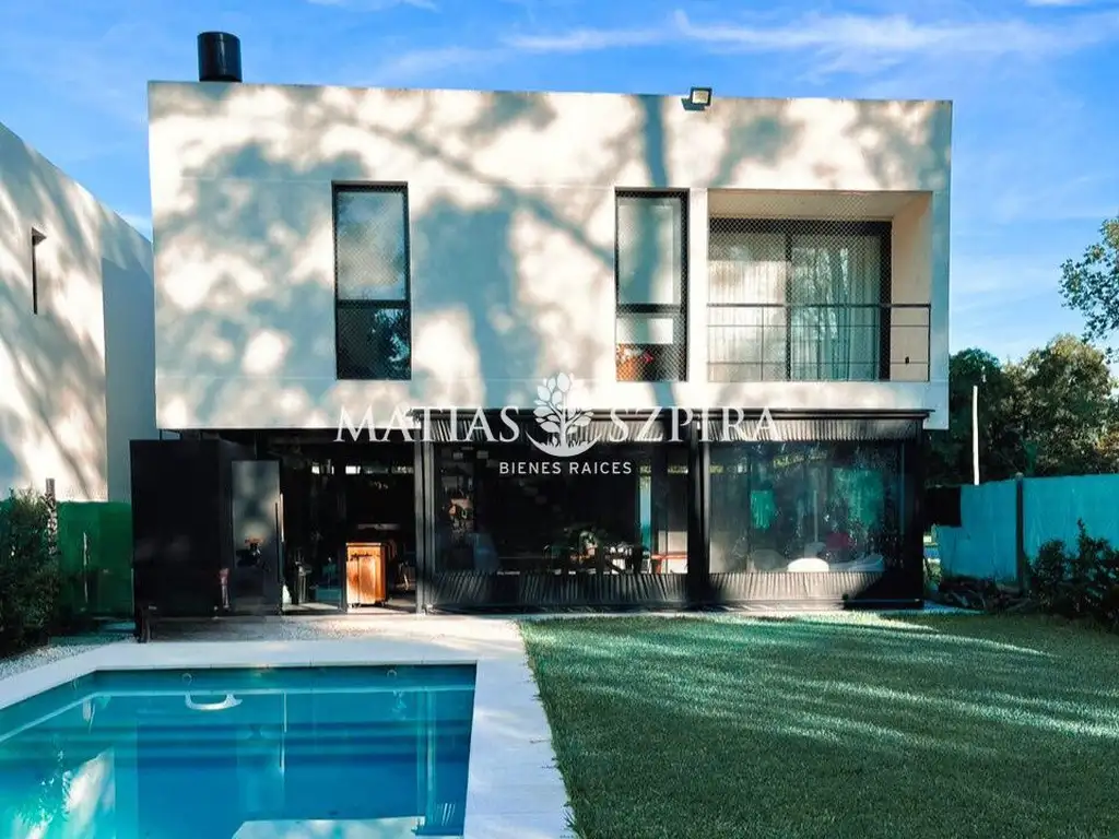 Galeria cerrada con parrilla . Piscina. Baño. Riego automático. Cochera 2 vehículos. Amplio parque.