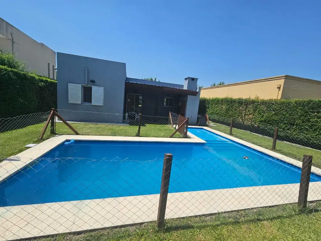 Jardin con piscina , proteccion de alambrado.