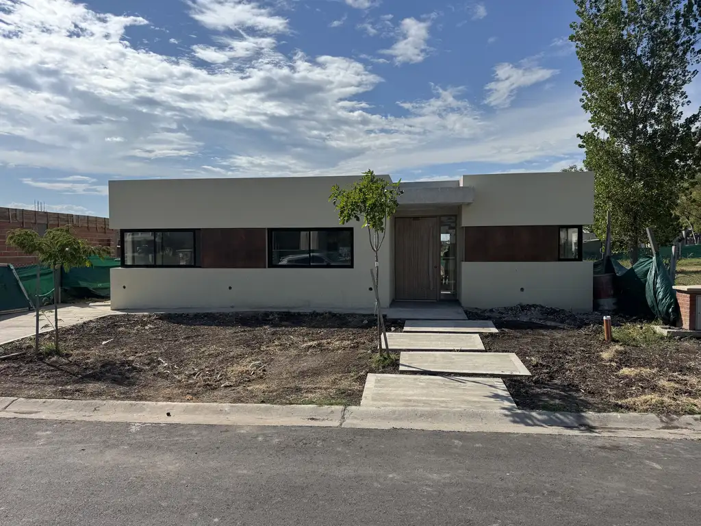 Comodidades: cochera para 2 autos, hall de entrada, porche de entrada, cocina con isla desayunador, lavadero, living-comedor con ventanales hacia galería, jardín interno que da gran luminosidad a la casa, dos dormitorios con placard, escritorio, baño compartimentado con ducha escocesa, dormitorio principal en suite con vestidor doble, galería cubierta con parrilla y mesada con bacha, parque libre al fondo