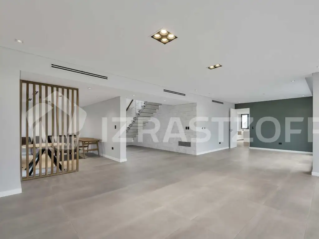 En planta alta nos encontramos un estar de uso libre, dos dormitorios con placards que comparten un baño completo con antebaño, una jr. suite con placard y baño completo y una master suite con importante vestidor y baño principal. Dos balcones con baranda de vidrio hacia el frente y fondo del lote.